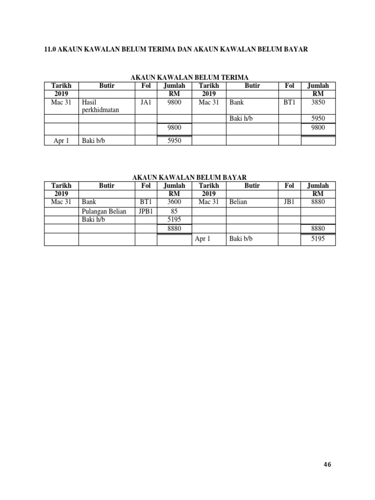 Akaun Kawalan Cg Narzuki Online from cgnarzuki.com Format akaun belanja melibatkan pelarasan akaun hasil 20x8 rm jan 1 hasil belum terima x jan 1 hasil belum terperoleh dis 31 untung rugi xx dis 31 bank. Dapat menentukan ketepatan dan kesahihan catatan di dalam lejar. Nisbah pusing balik akaun = jumlah pembelian / purata akaun yang perlu dibayar. Apabila pesanan dibayar, item akaun belum terima dikurangkan dengan jumlah pesanan dan tunai meningkat. Pemadanan (matching) setiap hasil dan perbelanjaan yang berlaku dalam sesuatu tempoh perakaunan perlu dipadankan dalam tempoh berkenaan untuk menentukan jumlah sebenar hasil dan belanja yang berlaku dalam tempoh tersebut. Contoh umum akaun piutang adalah faedah yang dapat diterima. Akaun belum terima akan dipaparkan pada lembaran imbangan syarikat, kerana jumlah hutang ini dianggap sebagai aset. 0%0% found this document useful, mark this document as useful.